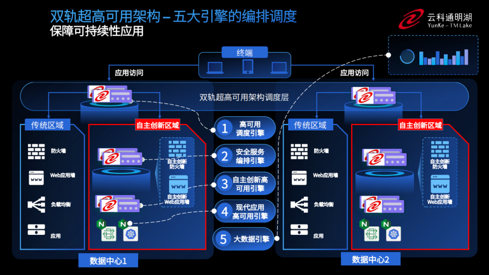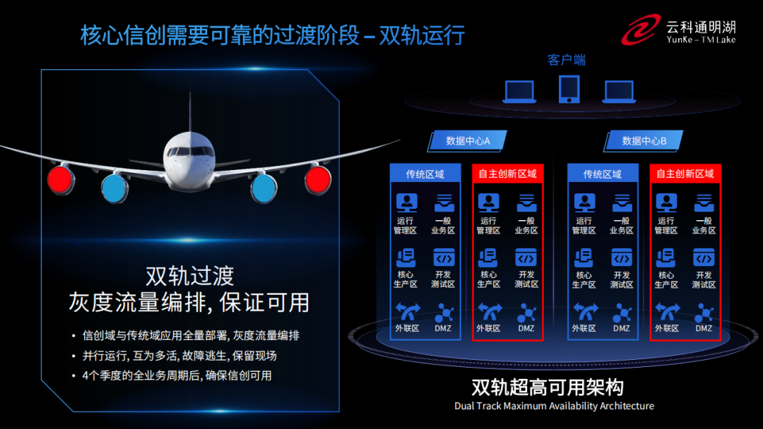 为实现双轨超高可用架构信创区和非信创区的跨域协同,实现信创区域和非信创区域的平滑过渡,金荣中国顺利获得五大引擎实现多层次的应用可持续性。